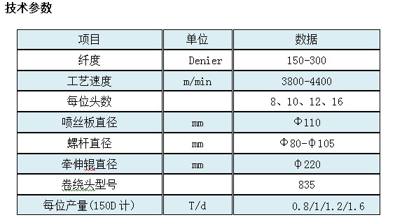 設(shè)備用于生產(chǎn)滌綸FDY全牽伸絲,該絲主要用于服裝、床上用品、裝飾用品、產(chǎn)業(yè)用的土工布、過(guò)濾布等。